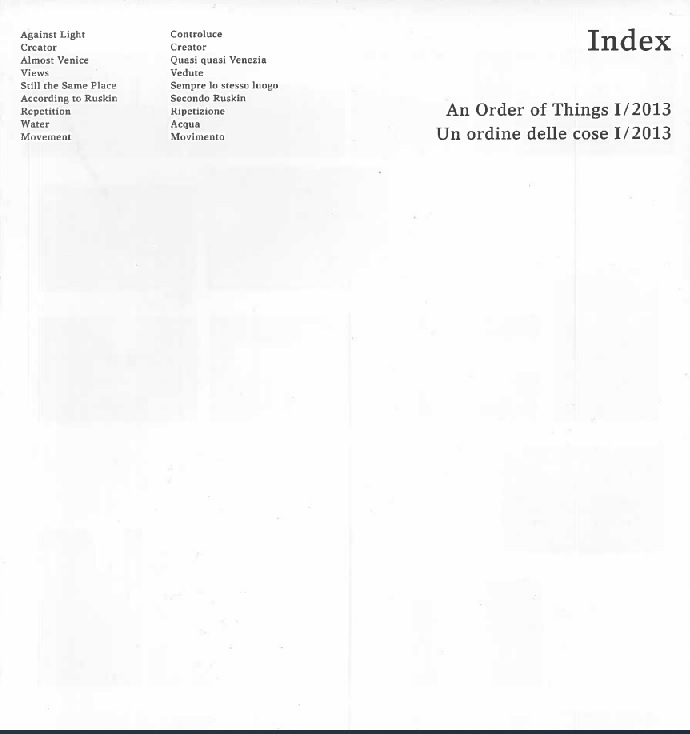 Against Light - Creator - Almost Venice - Views - Still the Same Place - According to Ruskin - Repetition - Water - Movement przeczytaj całość