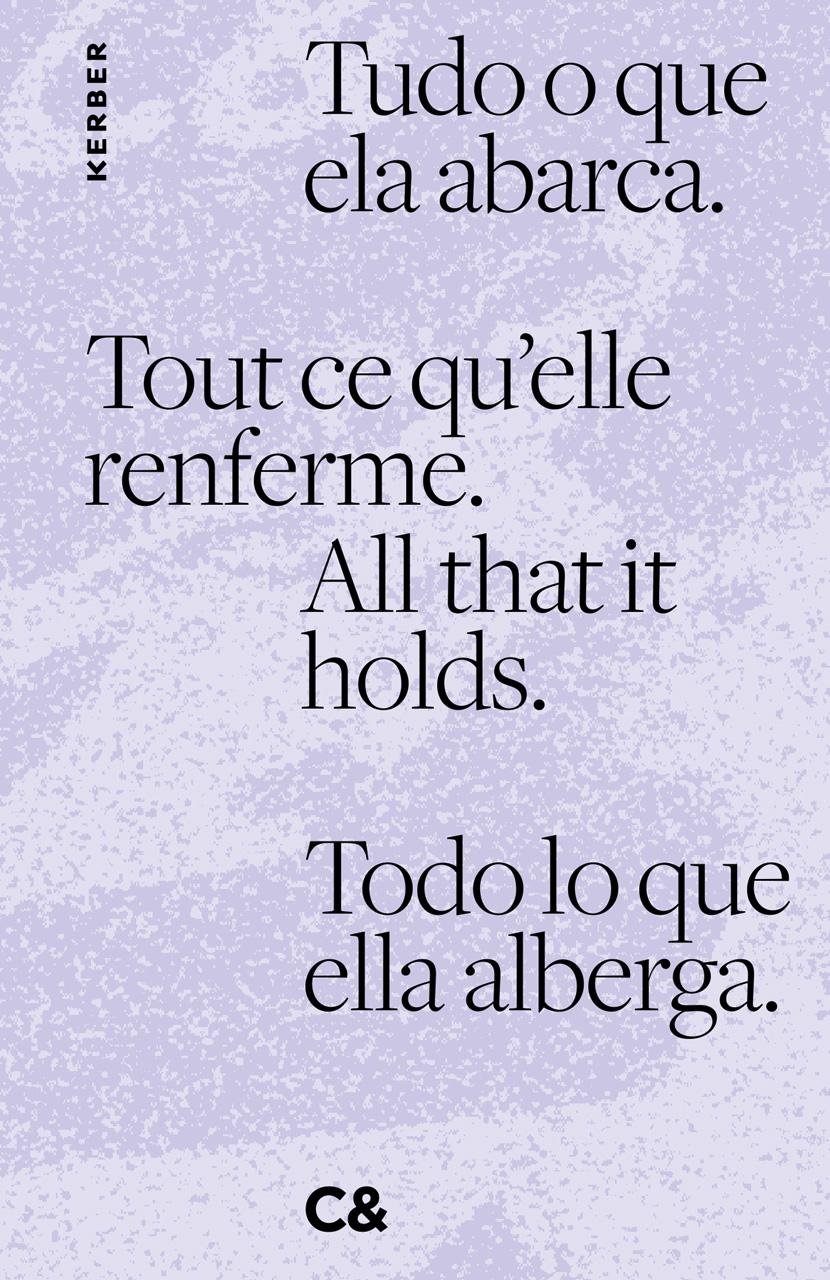 All that it holds. Tout ce qu'elle renferme. Tudo o que ela abarca. Todo lo que ella alberga. (angielski)