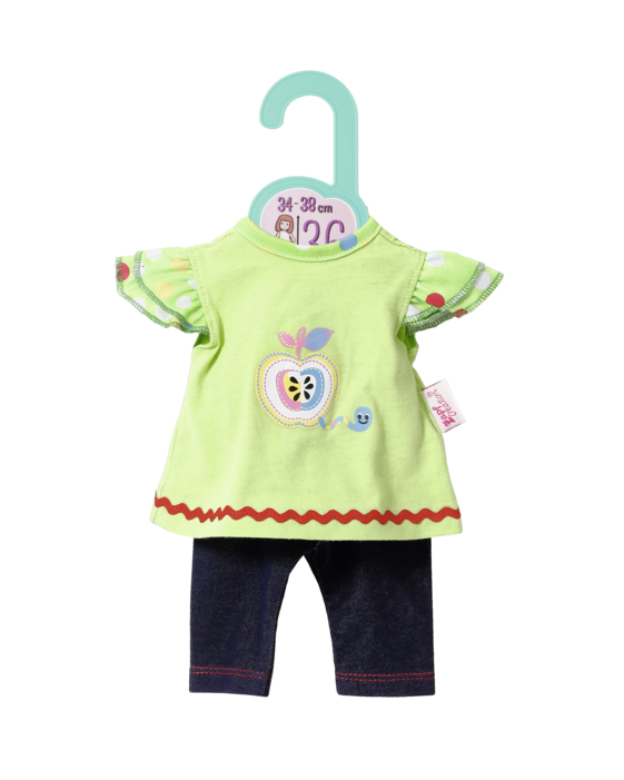 Pohodlné oblečení pro panenky ve velikosti 34 – 38 cm. Součástí šatičky a legíny. przeczytaj całość