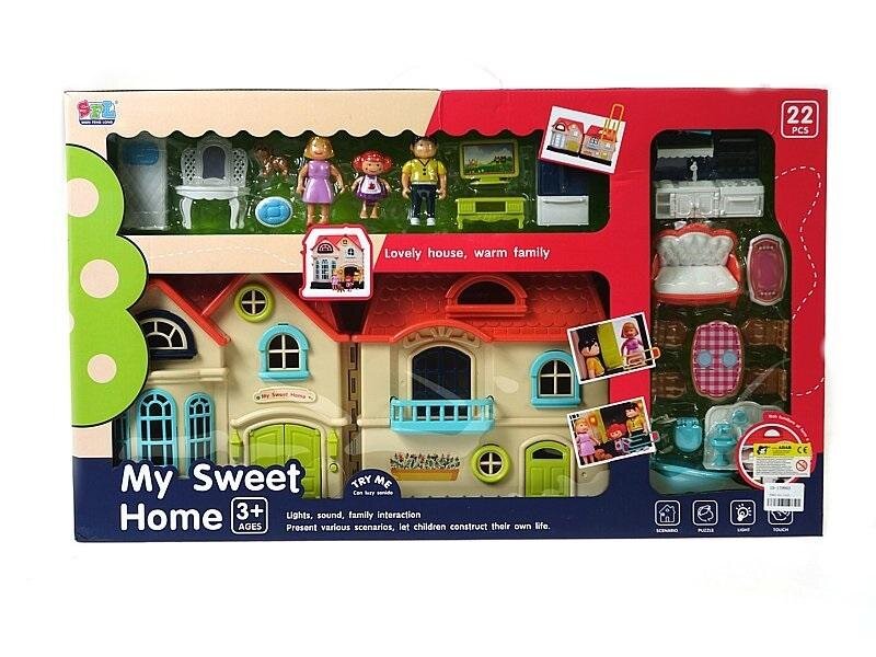 domek dla lalek, ze światłem, meble, figurki; 66,5x39,5x7,5cm, W/B przeczytaj całość