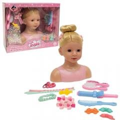 Głowa do stylizacji Tosia Duża głowa do czesania z pięknymi, złocistymi włosami to idealna zabawka dla małych miłośników fryzjerstwa. Zabawa w salon piękności nabiera nowego wymiaru i pozwala rozwijać wyobraźnię, kreatywność oraz zainteresowania związane ze stylizacją włosów. Dołączone akcesoria...