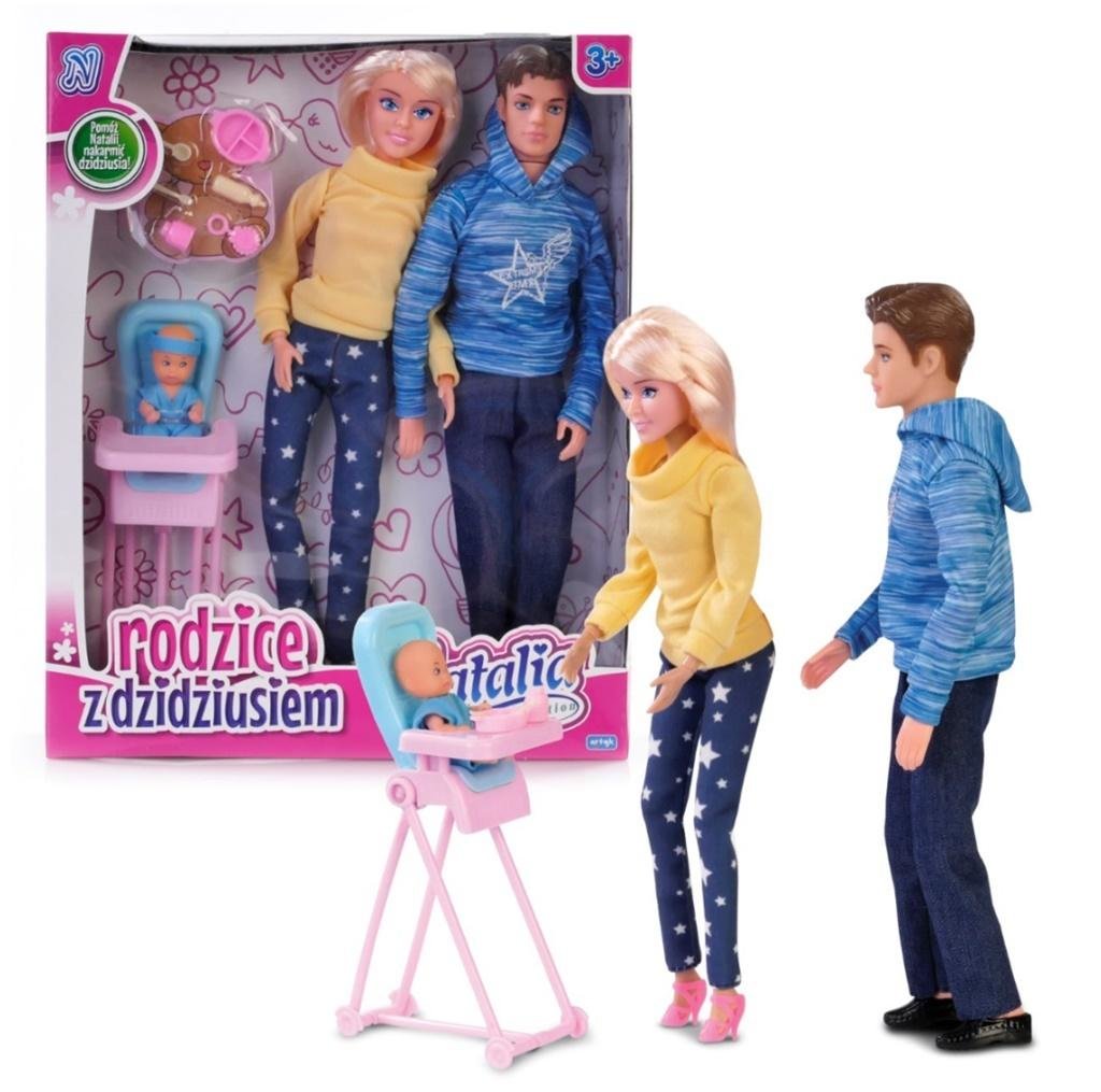 W ZESTAWIE: 2 LALKI 29 CM. MAMA I TATA, BOBASEK 7 CM., KRZESEŁKO DO KARMIENIA, TALERZYK, KUBEK, SZTUĆCE, BUTELKA, 3+ przeczytaj całość