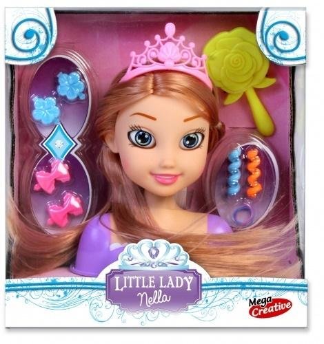 Zestaw do stylizacji zawiera 11 elementó: głowę lalki z długimi włosami, koronę, lusterko, gumki, spinki oraz ozdoby. Głowa wykonana z gumy, reszta ozdób wykonana z plastiku. przeczytaj całość