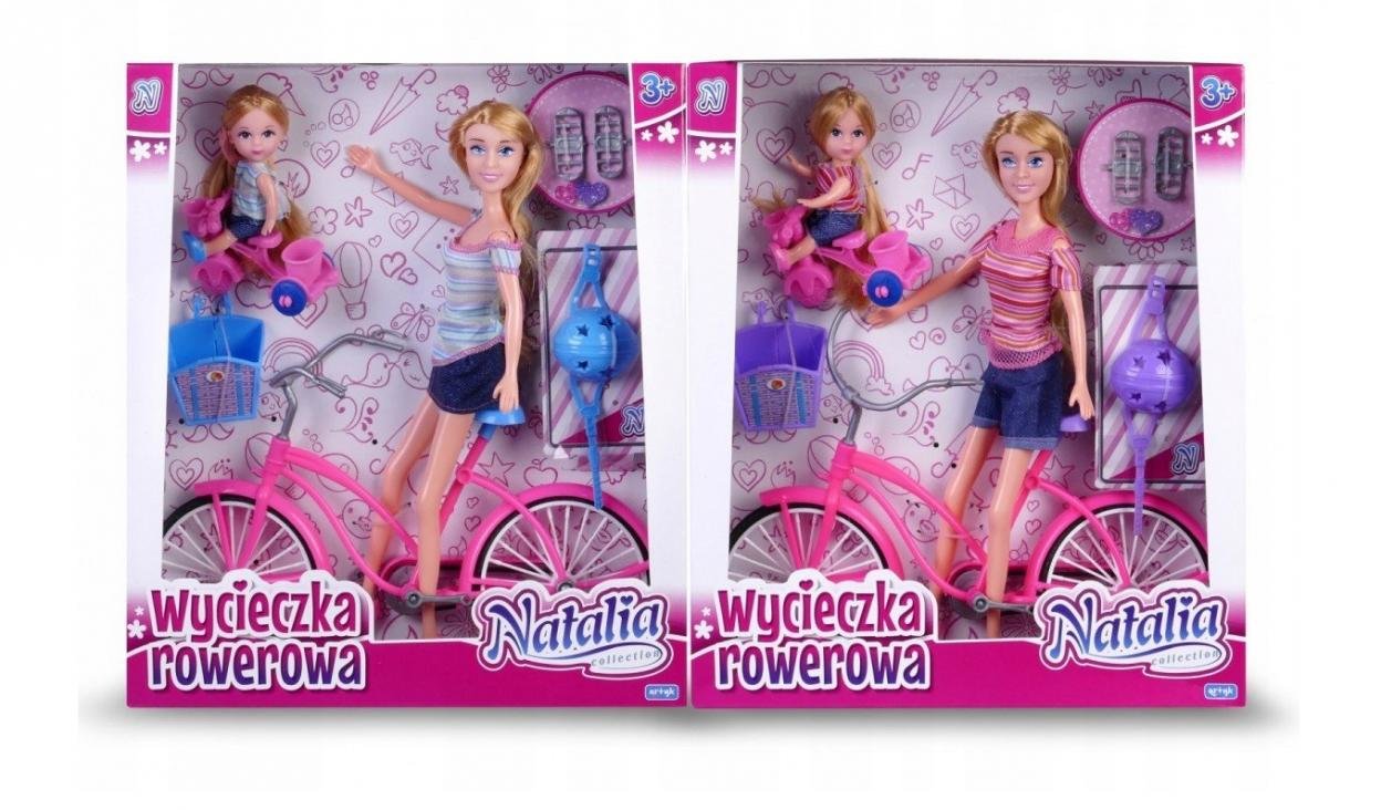W zestawie: lalka 29cm, rower, kask, koszyk na rower, lalka 9cm, rowerek 3-kołowy. 2 kolory - niebieski, różowy. Towar wysyłany losowo.Wiek: 3+Wymiary opakowania: 33x29x7cm. przeczytaj całość