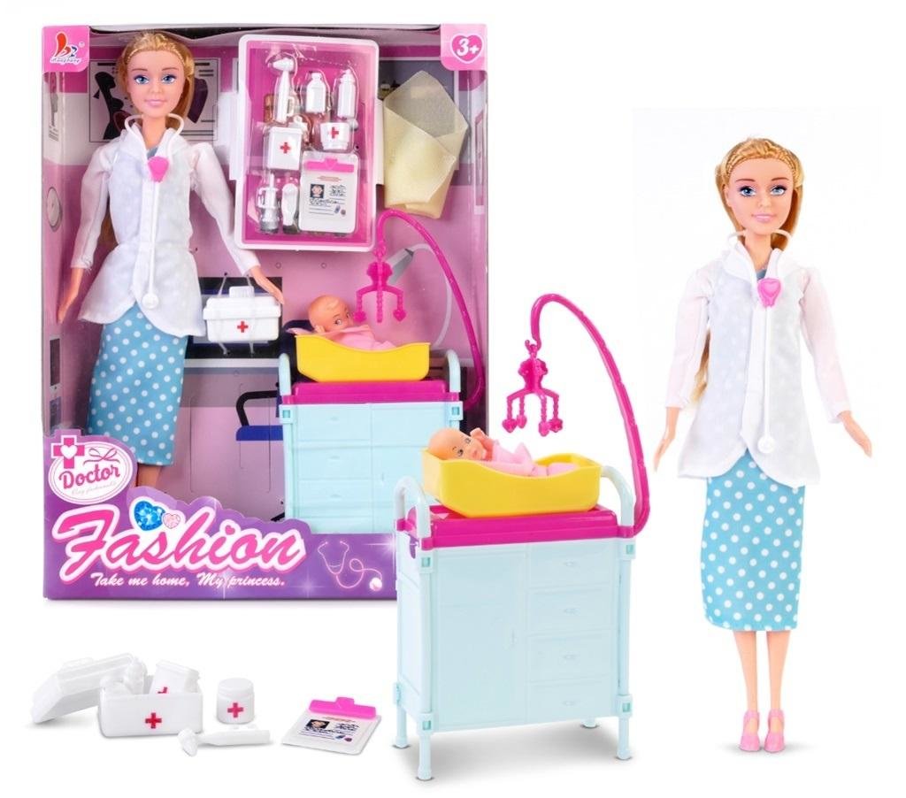 W ZESTAWIE: LALKA 29 CM., BOBASEK 7 CM., SZAFKA Z ŁÓŻECZKIEM I KARUZELKĄ, DODATKOWY BECIK, AKCESORIA LEKARSKIE, WYM. OPK: 24 X 31 X 6 CM., 3+ przeczytaj całość