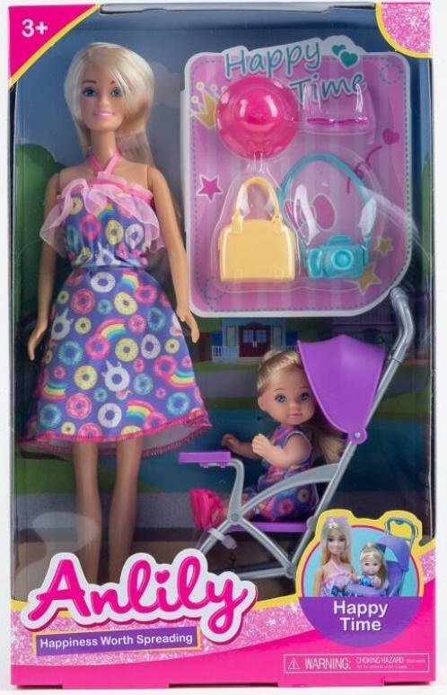 Lalka Anlily 30 cm z dzieckiem w wózku + akcesoria