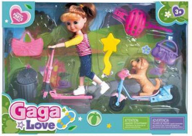 Laleczka 15 cm. Dodatkowe akcesoria: 2 hulajnogi, piesek, szczotka, kask, 2 torebki, śmietnik. Produkt nie potrzebuje baterii. Zabawka przeznaczona dla dzieci powyżej 3 roku życia. przeczytaj całość