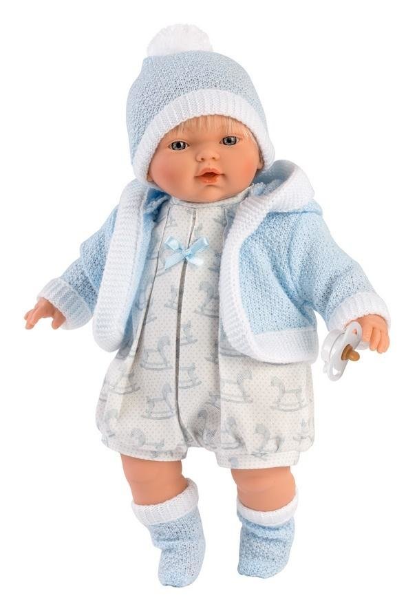 Mluvící panenka s měkkým látkovým tělem a s vlásky po celé hlavě. Po vytažení dudlíku z úst začne panenka říkat „mama“, „papa“ a vydávat reálný zvuk plačícího miminka. Panenku lze utišit dudlíkem. Velikost 33 cm. Součástí balení je 3 x knoflíková baterie LR44. Součástí ceny je recyklační... przeczytaj całość
