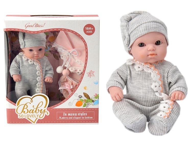Lalka gumowa - szare ubranko 18 cm