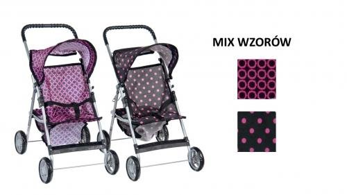 Wózek spacerowy dla lalki w modnej, nowoczesnej kolorystyce - czarny w różowe groszki. przeczytaj całość