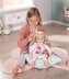 „Sophie, nie ruszaj się, masz motyla we włosach!” Aha, to tylko motyl na opasce... Wysokiej jakości blond włoski Sophii można układać w coraz to nowe fryzury i rozczesywać różową szczotką. Mała miłośniczka róż najbardziej lubi mieć włosy rozpuszczone i różową opaskę z motylową ozdobą. Jej ulubione kwiaty znajdują się też na bucikach i sukience. Górna część sukienki jest jasnoróżowa, a spódnica biała. Legginsy mają ten sam kolor co długie rękawki. Sophia chętnie zajmuje się stylizacją i ubieraniem, ale też lubi bawić się z dziećmi od dwóch lat. Modna materiałowa lalka dzięki miękkiemu tułowiu jest idealna do przytulania. • Oryginalna lalka Baby Annabell z miękkim tułowiem. • Do przytulania, zabawy i brania ze sobą wszędzie. • Baby Annabell umożliwia realistyczną i pomysłową zabawę lalką oraz wspiera rozwój odpowiedzialności i empatii. Baby Annabell Sophia to lalka o wielkości 43 cm. Ubrana jest w sukienkę, legginsy i buciki. W zestawie znajduje się opaska i szczotka do włosów.