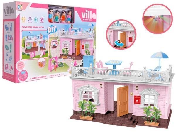 W zestawie są 4 lalki - rodzice (ok. 6 cm), 2 dzieci (ok. 5 cm), zatem można bawić się z koleżankami i kolegami i odrywać różne historię zaczerpnięte z życia codziennego lub kreować nowe, ciekawe przygody.Domek jest w pełni umeblowany - meble i akcesoria do sypialni, jadalni, łazienki oraz do...