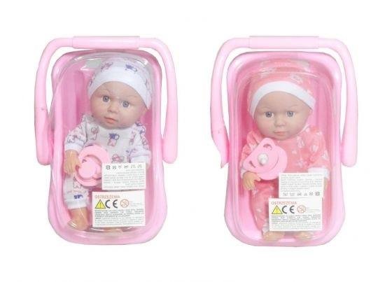 Urocza laleczka w nosidełku ze smoczkiem. Produkt występuje w kilku wersjach kolorystycznych, wybierany losowo. Cena dotyczy jednej sztuki. Zabawka zapakowana w przezroczysty klosz. Produkt dla dzieci od 3 lat. Podane wymiary są wymiarami opakowania. przeczytaj całość