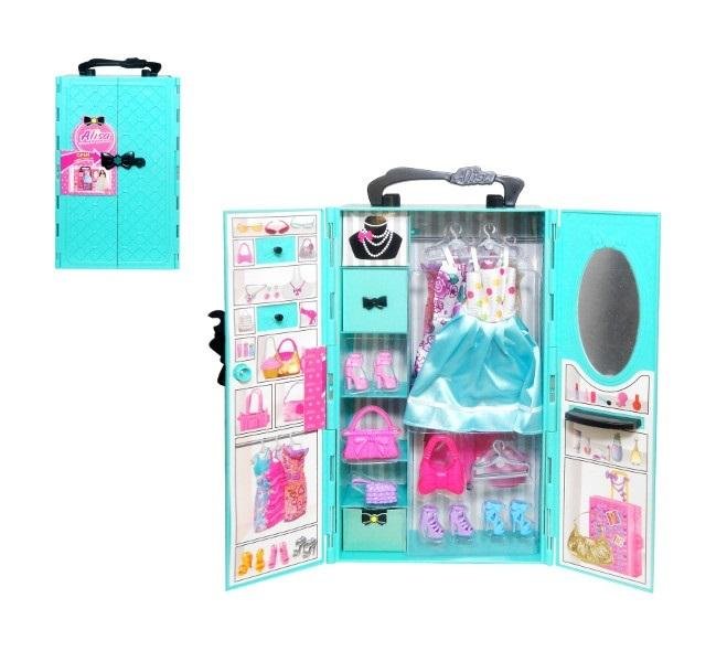 Kolorowa szafa dla lalek kryje w sobie wiele niespodzianek. Posiada w swoim wyposażeniu: lustro, wieszaki, sukienki, buty i torebki. Podane wymiary są wymiarami szafy. przeczytaj całość