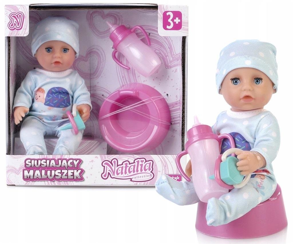 Lalka Natalia siusiający maluszek 17 cm.W zestawie:lalka 17 cm,nocnik,butelka,smoczek.Funkcje: siusia po podaniu butelki z wodą, zamyka oczy. przeczytaj całość