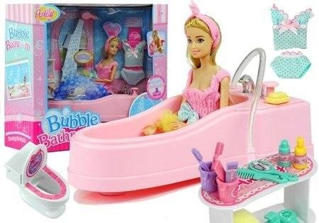 Zestaw lalka w wannie + akcesoria Prezentowany zestaw zawiera w sobie wszystko, co powinno znajdować się w łazience każdej lalki. Szereg różnorodnych akcesoriów sprawia, że lalka może zażyć odprężającej kąpieli, podczas której wypocznie jak nigdy dotąd. Szafka posiada duży rozmiar, co umożliwia...