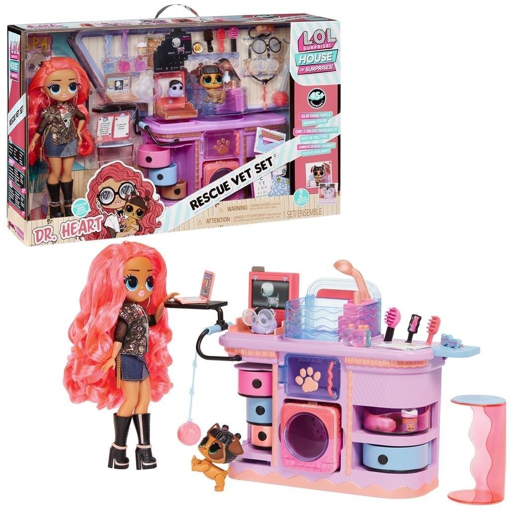 L.O.L. O.M.G. Surprise - Rescue Vet Set, w którym Dr. Heart troszczy się o wszystkie zwierzęta, aby były zdrowe, zadbane i czuły się jak najlepiej.Zdobądź ponad 45 niespodzianek z tego zupełnie nowego zestawu, w tym zestaw do rozbudowy, ekskluzywny zestaw O.M.G. modna lalka, chomik, pies, aparat...