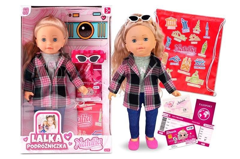 Naciśnij lalkę na brzuszek i posłuchaj jak wiele wie o podróżowaniu twoja nowa przyjaciółka! W zestawie: lalka miękka 41 cm., Plecak, okulary, aparat fotograficzny, paszport, karta kredytowa, karta...