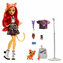 Lalka Toralei Stripe porusza się z kocią gracją w straszliwie modnym stroju: spódniczce w kratę ze śladami pazurów, koszulce z kocim nadrukiem i krótkiej kurtce motocyklowej.