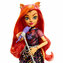 Rok szkolny już się zaczął, a uczniowie Monster High wracają na lekcje w modnym stylu. Toralei Stripe przemierza korytarze Monster High z kocią gracją w straszliwie modnym stroju: spódniczce w kratę z motywem pazurów, koszulce z kocim nadrukiem i krótkiej kurtce motocyklowej. Jej stylizację nie z tego świata inspirowaną kotołakiem uzupełniają łańcuszkowy pasek, krótki naszyjnik i białe trapery. Lalce Toralei Stripe zawsze towarzyszy jej tygrysek szablozębny, a w zestawie są też koszulka, metaliczny plecak, smartfon, mleczko i jedzenie dla pupila. Lalka nie stoi samodzielnie. Kolory i elementy dekoracyjne mogą się różnić.