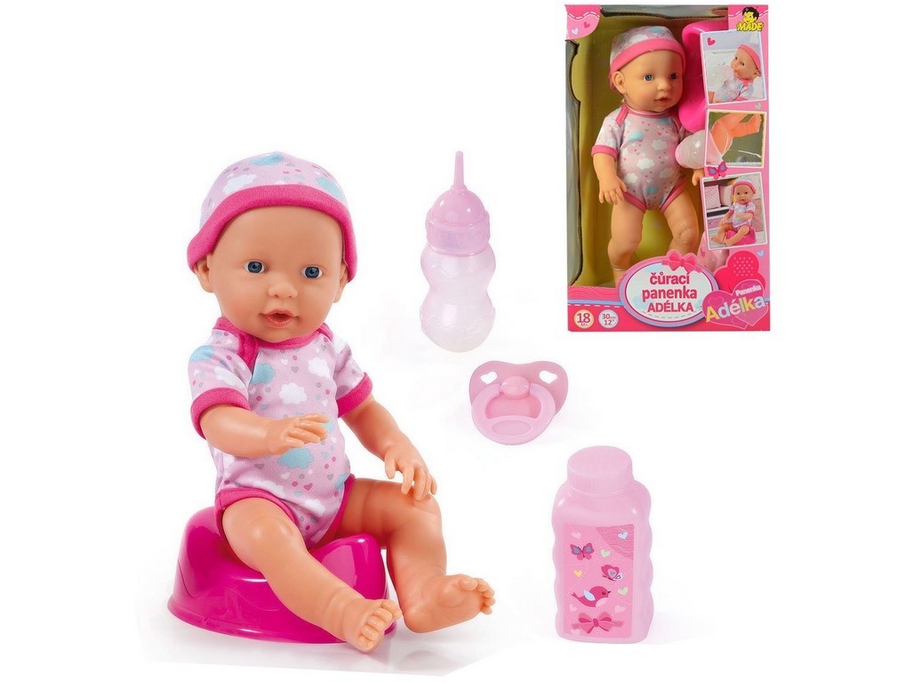 Čůrací panenka AdélkaPanenka s české kolekce Adélka. Napije se a čůrá. Součástí balení je nočník, dudlík a dvě lahvičky.Rozměr panenky: 30 cmVhodné pro děti od 18 měsíců. przeczytaj całość