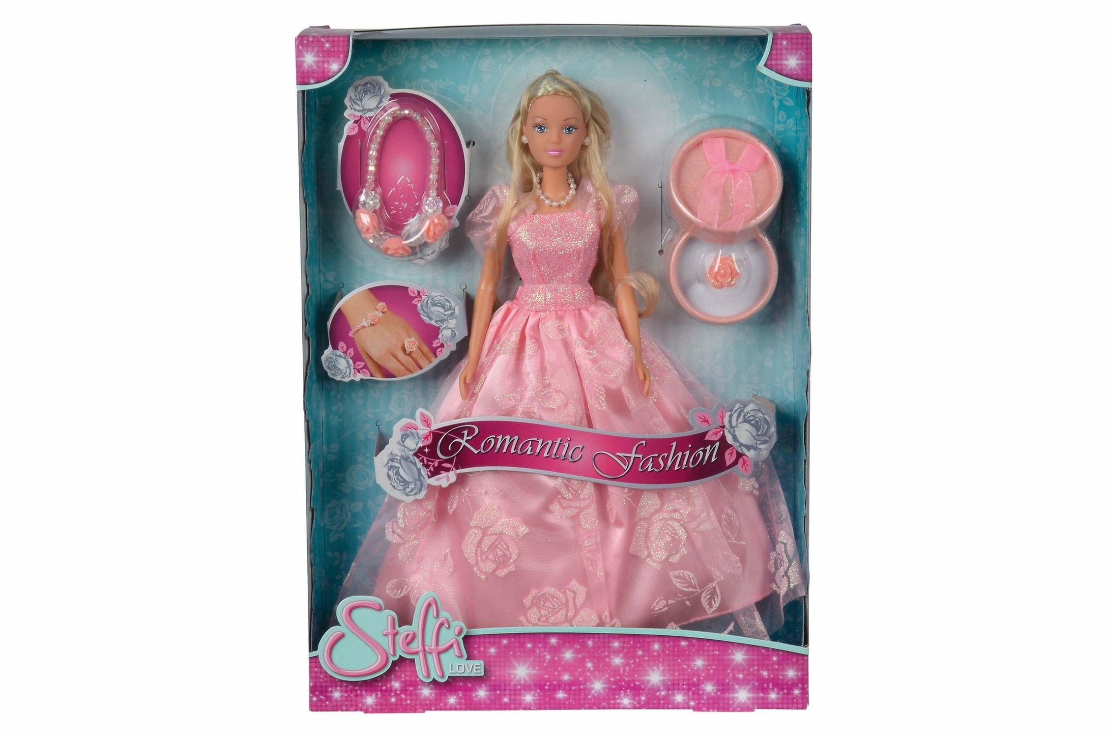 Panenka Steffi v romantických růžových šatech, s prstýnkem a náramek pro holčičku. Součástí dárková krabička na prstýnek. Velikost panenky 29 cm. przeczytaj całość