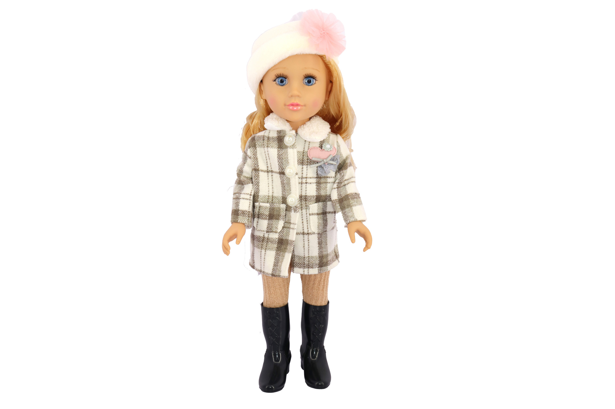 Panenka s kabátem, čepicí a zvukovými efekty. Velikost 48 cm. Zvukové efekty stlačením bříška. 3xAG13 baterie součástí. przeczytaj całość
