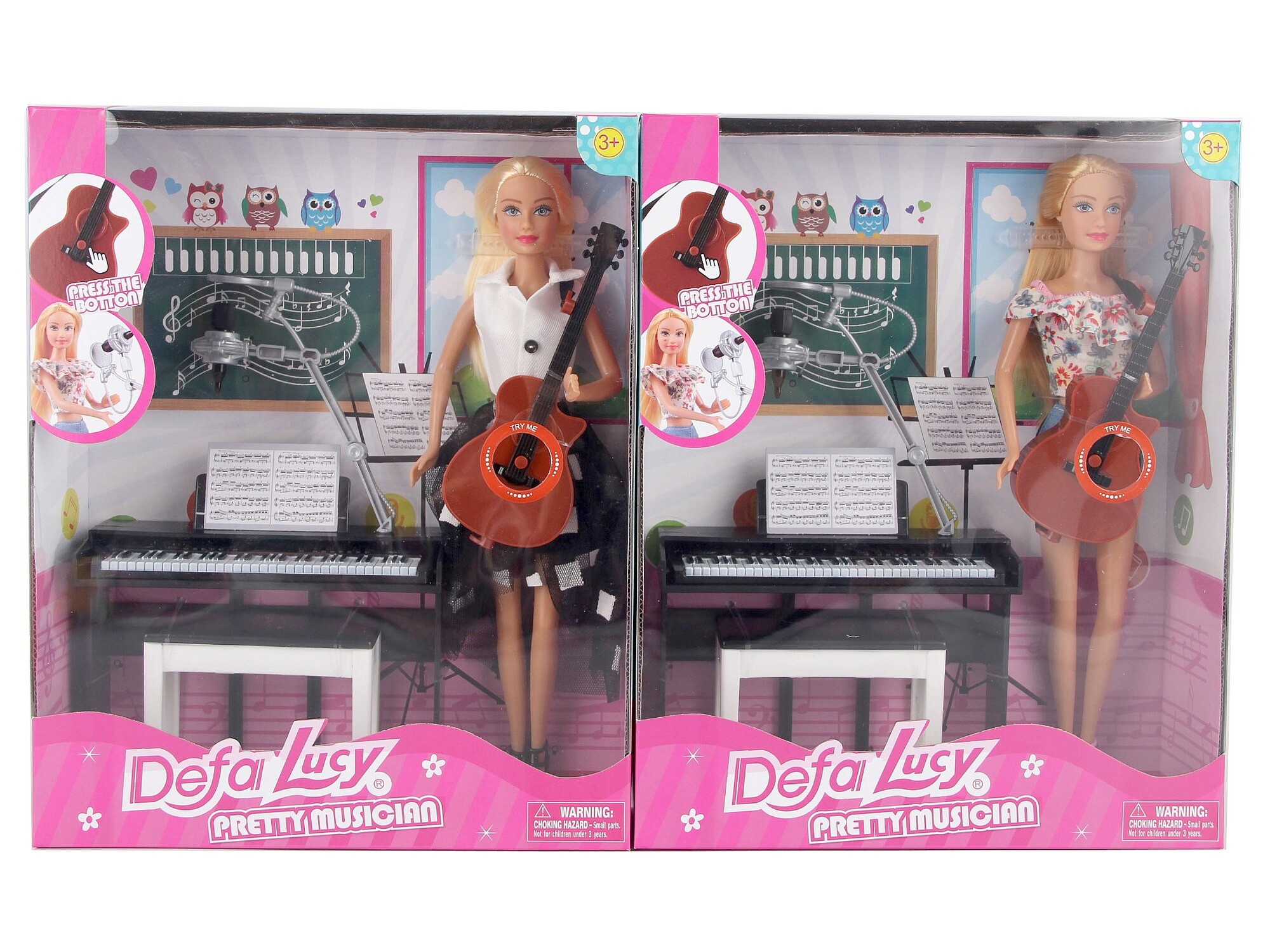 Lalka 29 cm z zestawem instrumentów muzycznych, fortepian, gitara; 32x25x7cm. Baterie 3xAG13 są dołączone do opakowania przeczytaj całość
