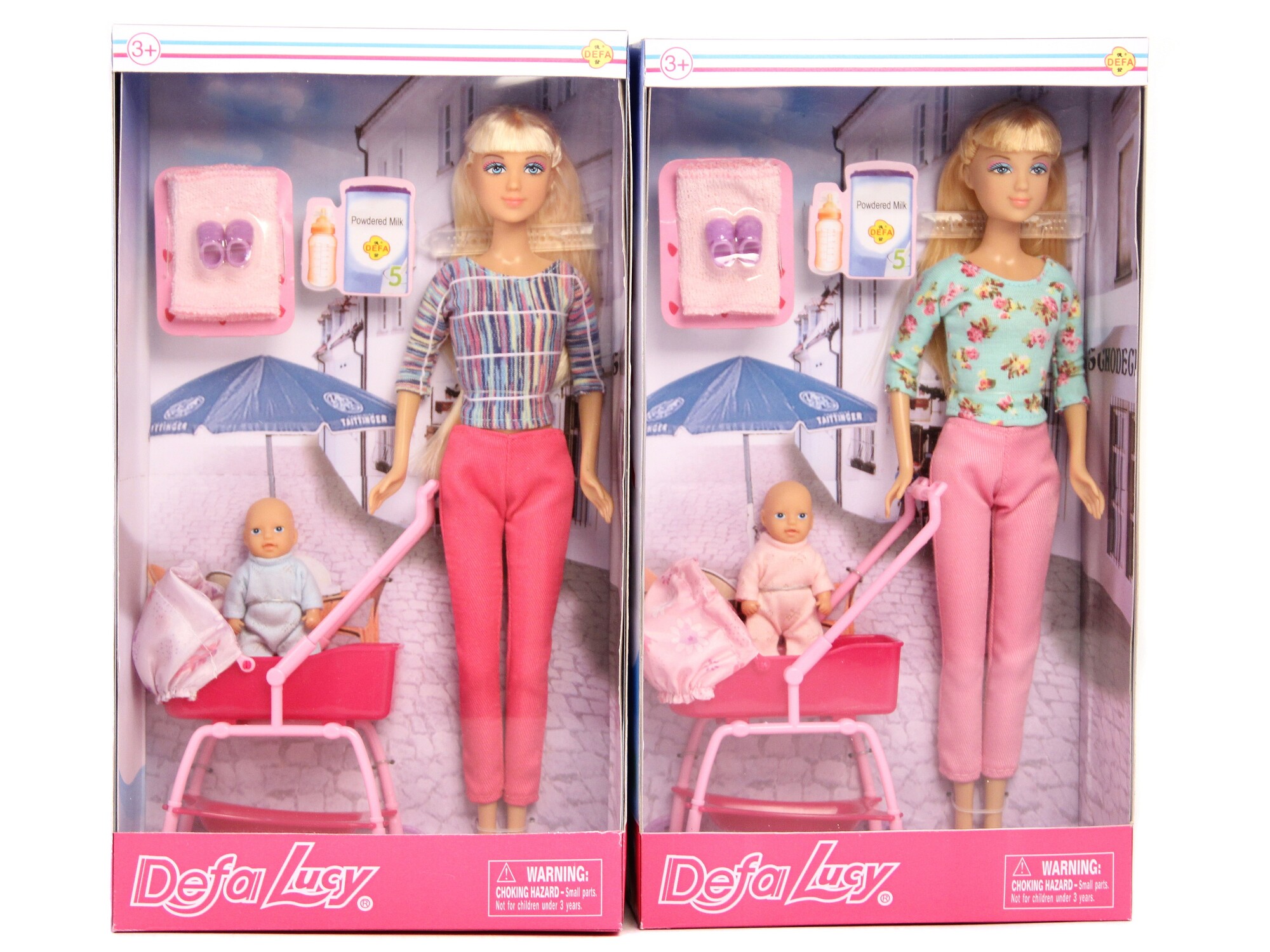 Set maminka na procházce - panenka 29 cm a miminko v kočárku, s příslušenstvím; 32 x 18 x 6,5 cm
