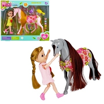Panenka má pohyblivé ruce a nohy ohnuté v loktech a kolenou, dlouhé vlasy spletené do 2 copů, koník má pohyblivou hlavu a krk, dlouhou hřívu a ocas, které se dají česat, souprava je dostupná ve dvou barvách. Panenka se vejde i do malé kabelky, b> takže bude perfektní jako společník na cesty!...