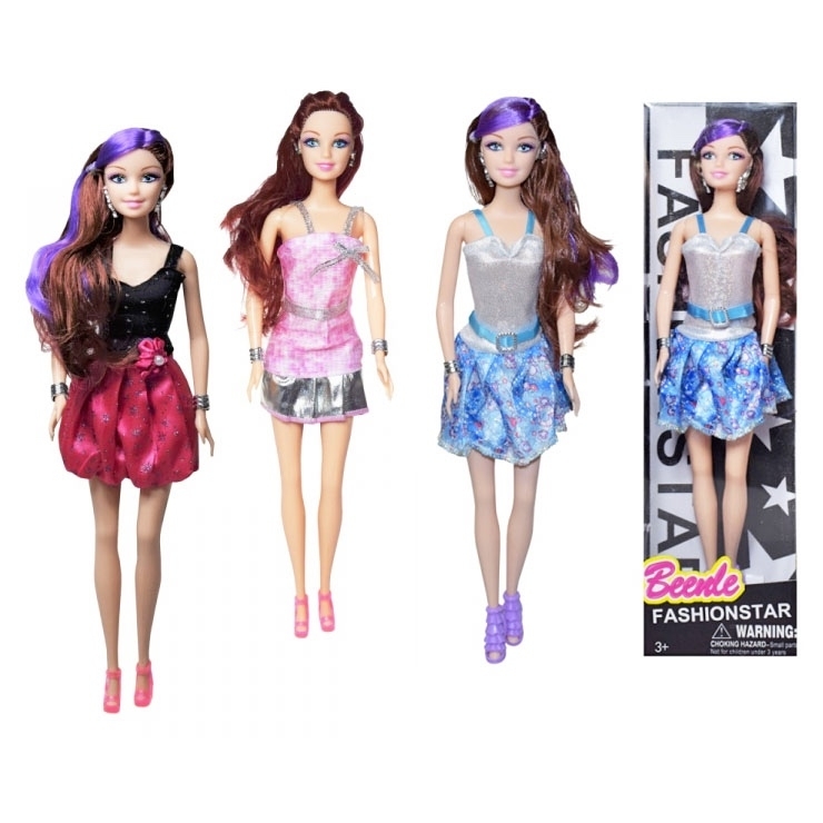 Stylová panenka Bára s kloubovými nohama. Možnost výběru ze tří barevných provedení oblečení - modré, růžové nebo černo-růžové šaty. Nevhodné pro děti do 3 let.Výška panenky - 30cm przeczytaj całość