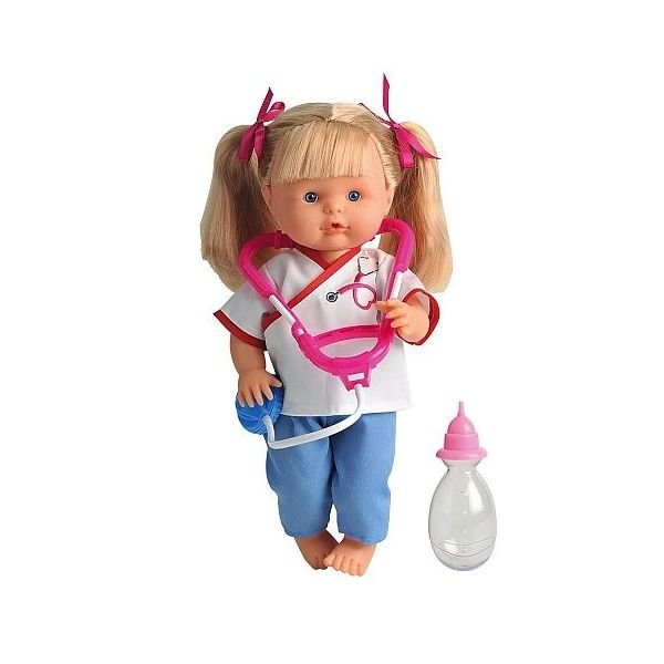 Panenka Nena umí 50 slov, pije a čůrá. Obsah balení: Nena 36cm, kočička, stetoskop, lahvička na pití. Věk: 3+ przeczytaj całość