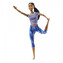 Lalka Barbie jest gotowa na każde zajęcia dzięki stylowemu strojowi - uroczy sportowy top i modne legginsy pozwalają jej na wygodny ruch, przy którym zawsze pozostaje modna. Dzięki 22 stawom nie brakuje jej elastyczności - ma stawy w szyi, barkach, łokciach, nadgarstkach, tułowiu, biodrach, udach, kolanach i kostkach. To umożliwia szeroki zakres ruchu i bez trudu pozwala na przyjęcie nawet najbardziej wymagających póz, co wzbogaca zabawę i rozwija wyobraźnię.