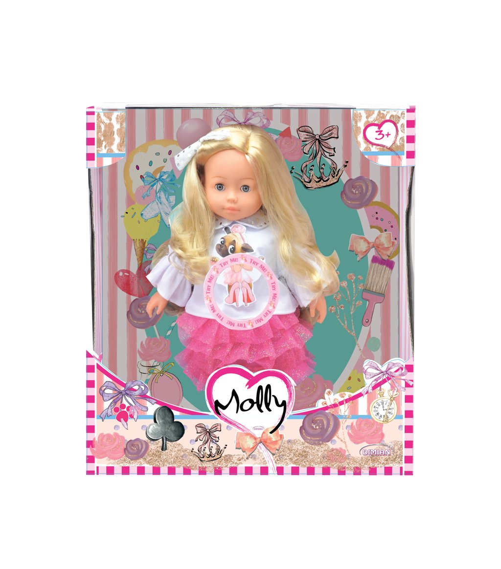 Lalka Molly to piękna lalka o wysokości 40 cm, idealna dla dzieci od 3 lat. Ma realistyczną winylową główkę, ręce i nogi, co nadaje jej autentyczny wygląd. Molly ma mrugające oczy i długie, piękne włosy, które dzieci mogą czesać i stylizować. Lalka potrafi odtwarzać 3 piosenki, które umilą zabawę i przyniosą radość przy każdej zabawie. Do działania lalki wymagane są 3 baterie LR44, które nie są dołączone do zestawu. Lalka Molly jest doskonałym towarzyszem kreatywnej zabawy i rozwoju małej motoryki.