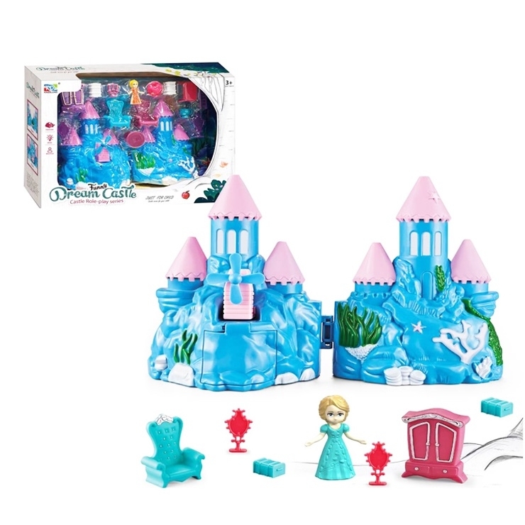 Kdo zachrání princeznu? Pohádkový rozkládací hrad na skalách. Balení obsahuje hrad s mlýnem, princeznu a nábytek. Nevhodné pro děti do 3 let.Výška hradu - 15cm przeczytaj całość