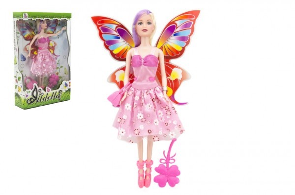 Panenka víla s křídly plast s doplňky 28cm 2 barvy v krabičce 21x33x6cm