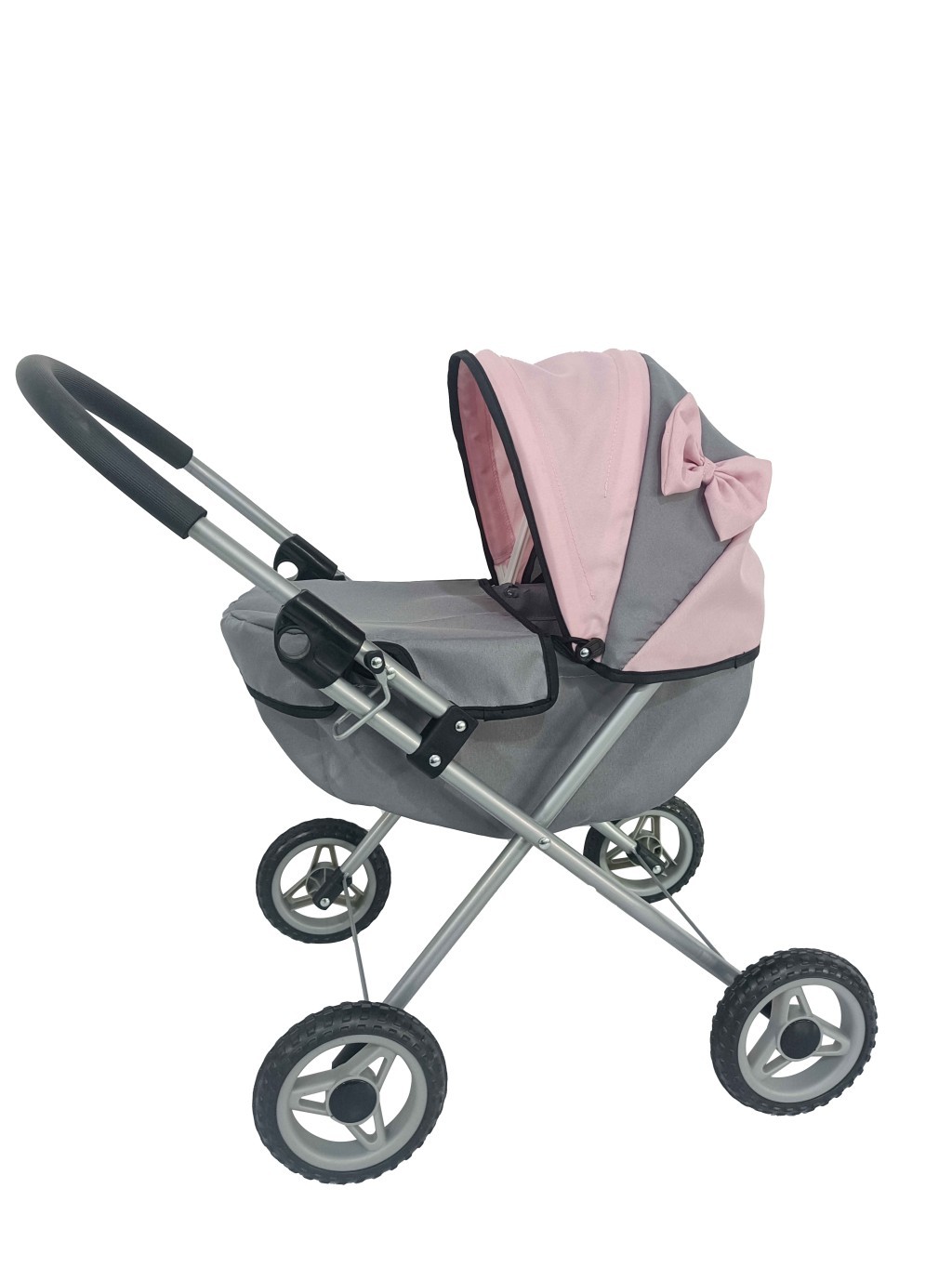 Moderní hluboký kočárek pro panenky Bambolina v moderní šedo-růžová kombinaci. Nastavitelná výška rukojeti kočárku a polohovatelná stříška. Velikost kočárku 66×37×60cm. przeczytaj całość