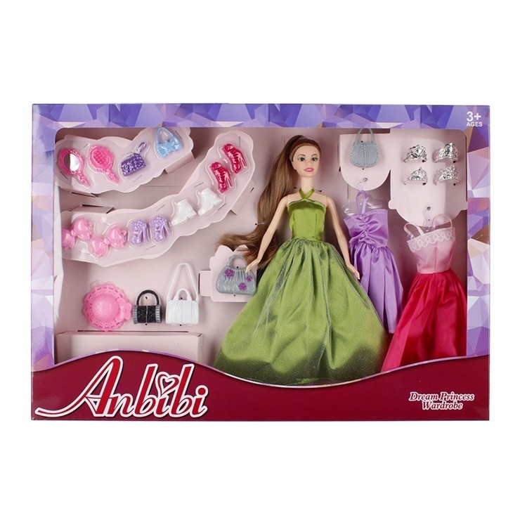 Obsah setu: panenka, 2 x výměna oblečení, 6 x kabelka, 3 páry bot, 2 x manžetové knoflíčky, zrcátko a kartáč, klobouk, 4 x diadém. przeczytaj całość