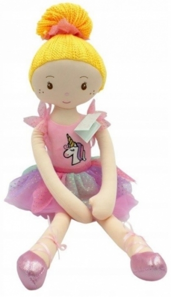 Hadrová panenka Luisa v šatičkách jednorožce, Tulilo, 70 cm - růžová