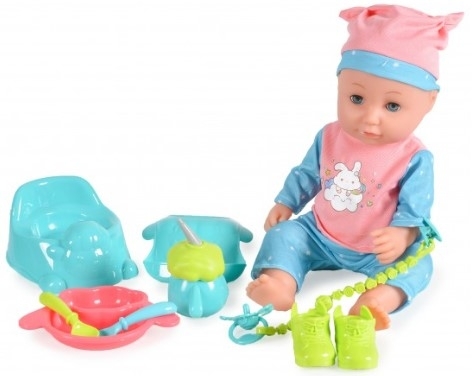 Panenka vydává zvuky, může pít vodu z lahvičky, která je součástí sady, a pak čůrat. Přiložená láhev je hračka a není vhodná pro kojence a děti.Napájení panenky na 3 AG13 baterie (jsou součástí balení). Věk 3+. przeczytaj całość