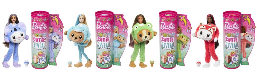 Panenky Barbie® Cutie Reveal™ v kostýmu potěší děti roztomilým motivem oblečků a překvapením při rozbalování, které zahrnuje panenku Barbie®, mini zvířátko, stylové módní doplňky, možnost používání 2 v 1 a hru se změnou barev. Prodávají se samostatně dle aktuální nabídky. Panenky neumí samostatně stát. Barvy a vzhled výrobku se mohou lišit.