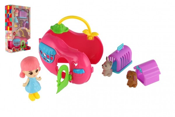 Panenka s domečkem s mazlíčky 2ks plast s doplňky v krabičce 14x24x6cm