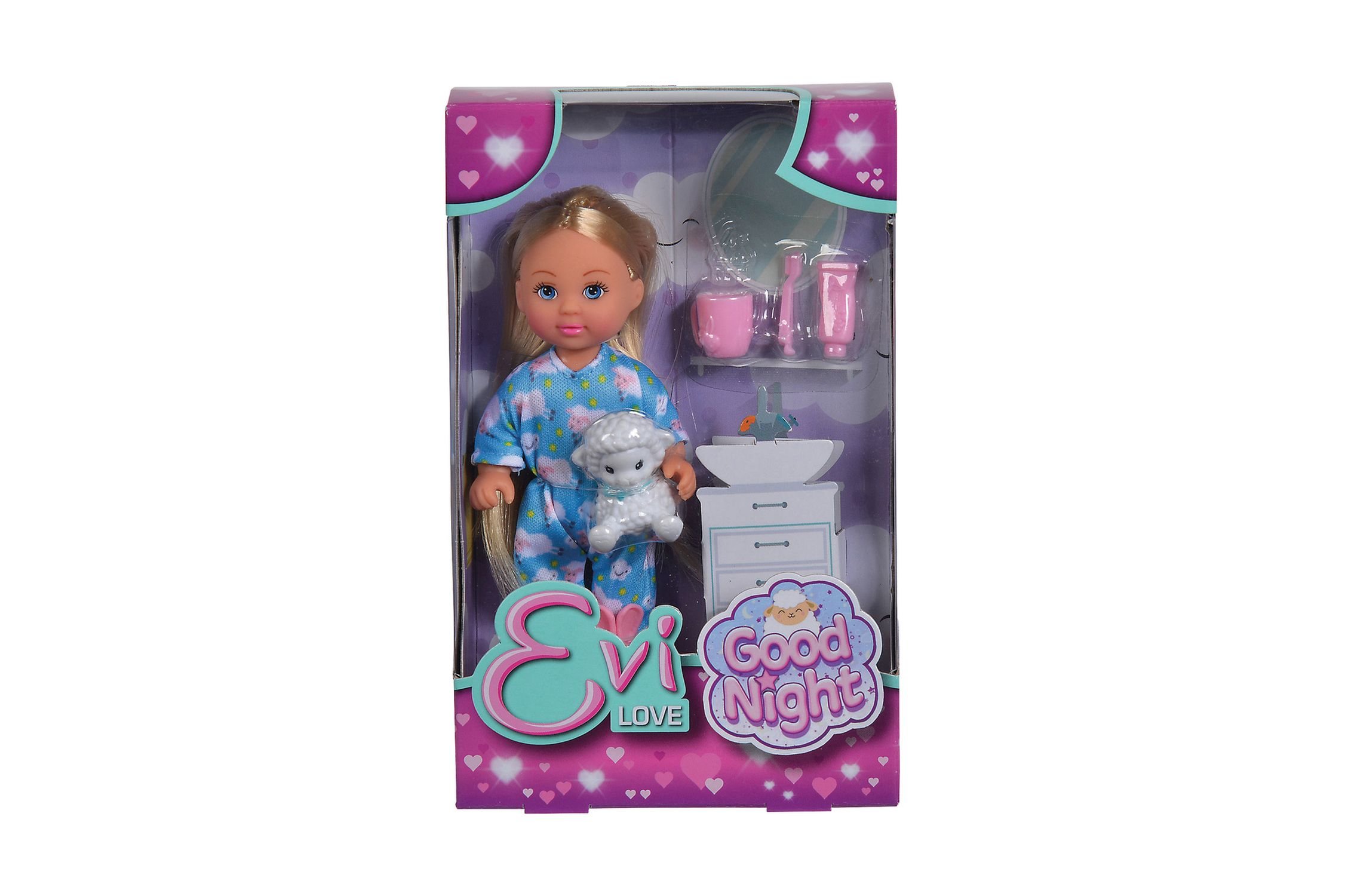 Panenka Evička v roztomilém pyžamku s papučemi, se svou ovečkou, zubním kartáčkem, pastou a hrnečkem. Velikost panenky 12 cm. przeczytaj całość