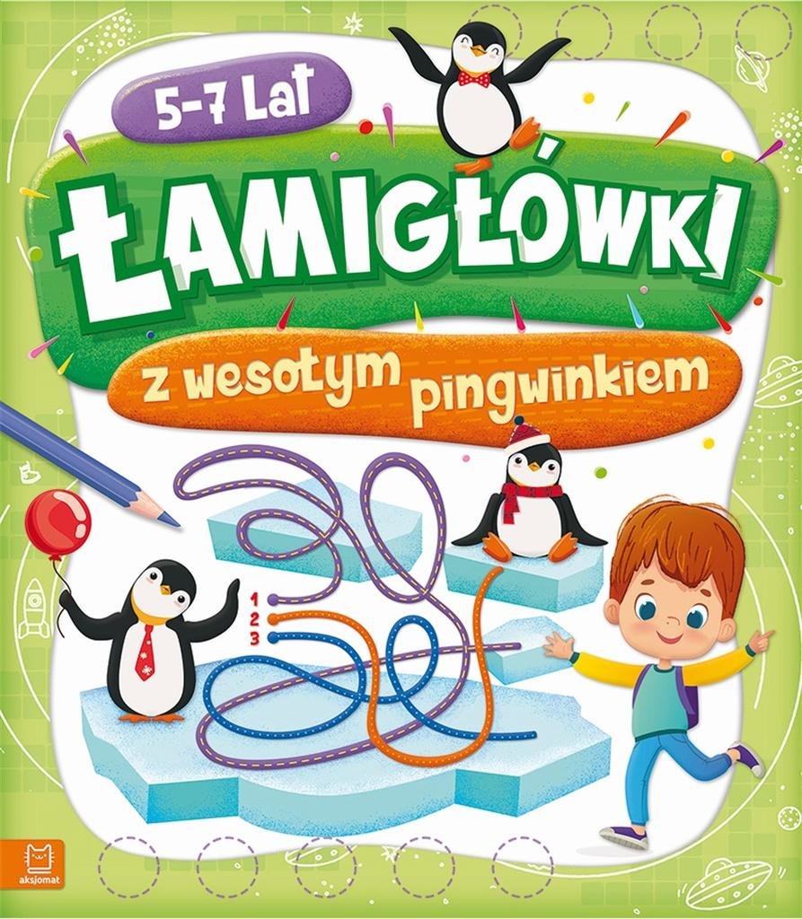 Łamigłówki z wesołym pingwinkiem to zapewniający dobrą zabawę zbiór łamigłówek dla przedszkolaków. Dziecko znajdzie w nim ciekawe i dostosowane do swoich możliwości zadania, dzięki którym rozwinie umiejętności: liczenia, porównywania cech i wielkości, rozróżniania kształtów oraz kierunków. Poćwiczy również logiczne myślenie, staranność i cierpliwość.
