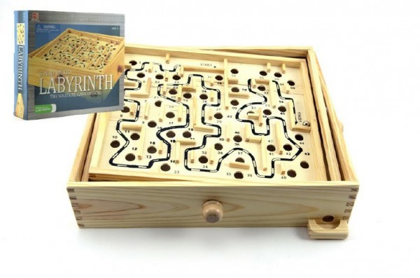 Labyrint s kuličkou hlavolam dřevo 32,5cm v krabici