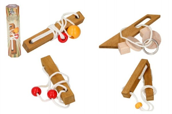 Hlavolam dřevo, 4 druhy, v krabičce 5x21x5cm - 1 kus