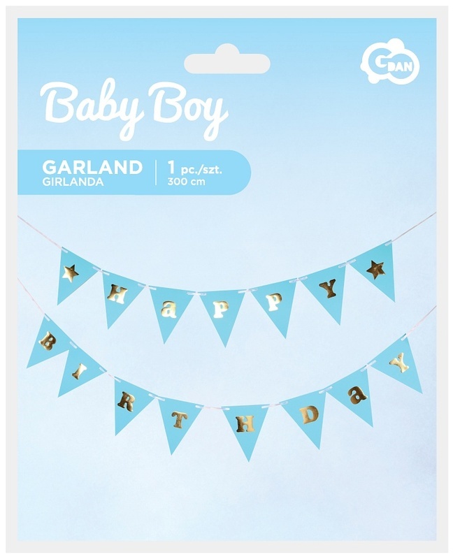 Girlanda papierowa B&G Happy Birthday - Baby Boy, jasnoniebieska, 300 cm, DIY, wys. flagi 17 cm, GoDan