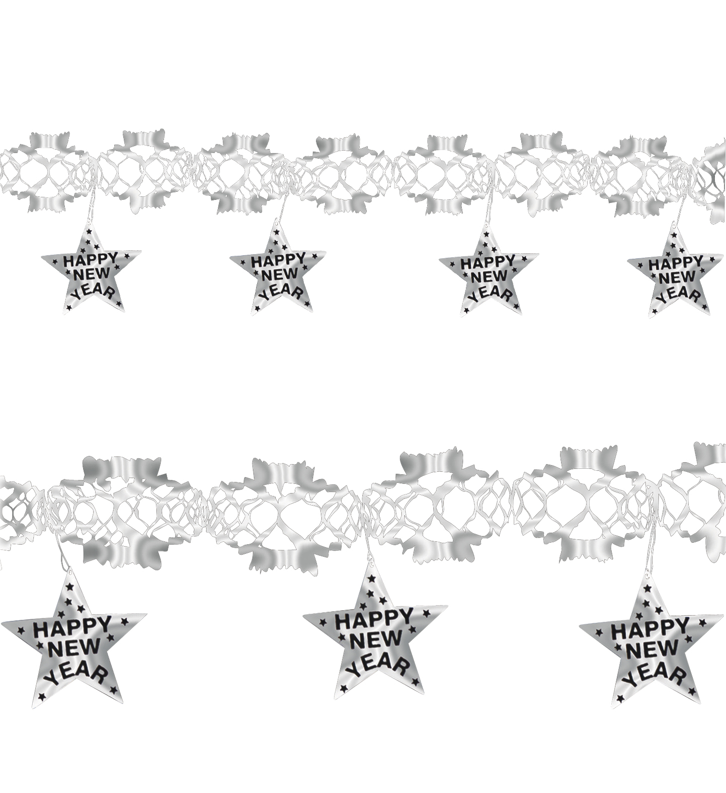Silvestrovská girlanda holografická s nápisem HAPPY NEW YEAR Barva: stříbrná Délka: 3m Materiál: 90% PVC, 10% papír przeczytaj całość