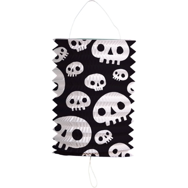 Lampion s potiskem bílých lebek na černém podkladu je perfektním doplňkem na strašidelnou halloweenskou oslavu, lampionový průvod nebo tematickou party. Díky klasickému skládacímu tvaru se snadno roztáhne do tvaru válce a uvnitř má praktický držáček na svíčku nebo LED světélko. Pro bezpečné...