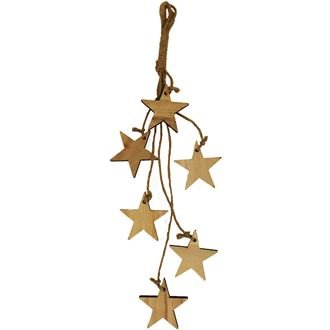 Girlanda hvězdy. Rozměry : průměr 5 cm, tloušťka 0,8 cm. Celková délka dekorace je 34 cm. Barva : hnědá. Materiál : dřevo, provázek. przeczytaj całość